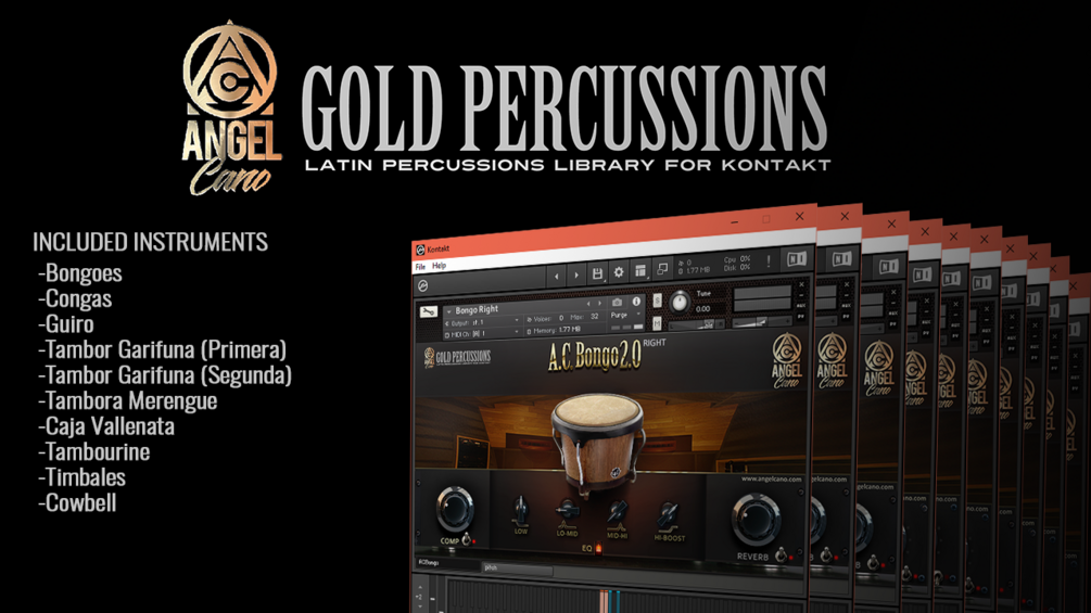 Gold percussion is a collection of Latin percussion instruments for Kontakt. Kontakt FULL VERSION REQUIRED 5.6.6 or UP Rate 44100 - 16bits Product version 2.0 Category: Percussions 307 Samples 94.1 MB Size